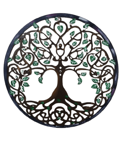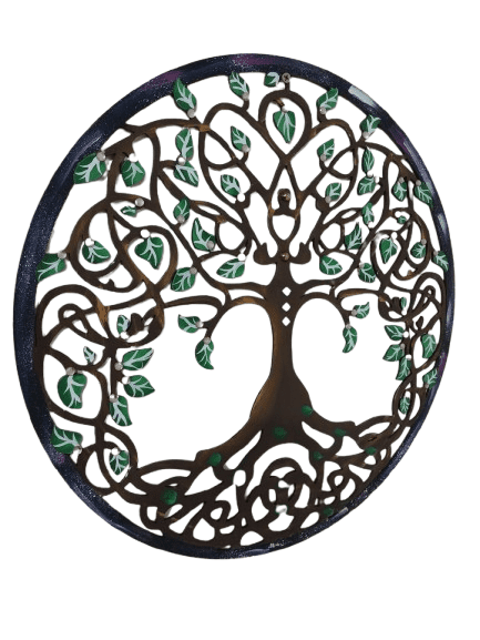 Essa mandala além de uma linda obra de arte pintada à mão, tem como finalidade harmonizar o ambiente e as pessoas que nele convivem ou frequentam, com vibração e frequência de Vitalidade e Força, a árvore da vida é um símbolo que atravessa gerações, desde culturas ocidentais, como celtas, gregos, romanos, persas, até culturas orientais, como a chinesa e a japonesa, a árvore da vida representa vitalidade, força e capacidade de vencer desafios, representa também nosso desenvolvimento pessoal, singularidade e beleza individual. Assim como os galhos de uma árvore se fortalecem e crescem em direção ao céu, nós também ficamos mais fortes, lutando por maior conhecimento, sabedoria e novas experiências à medida que avançamos pela vida. Ela também pode representar nossos ancestrais simbolizado pelas suas raízes, e os galhos seriam nossa família hoje, honrando e agradecendo nossos ancestrais teremos galhos fortes com frutos. Essa mandala também possui ao seu redor uma linda pintura do universo. Chakras: Muladhara, o 1º chakra, Visudha, o 5º Chakra, Ajna, o 6º chakra e Sahasrara, o 7º chakra.